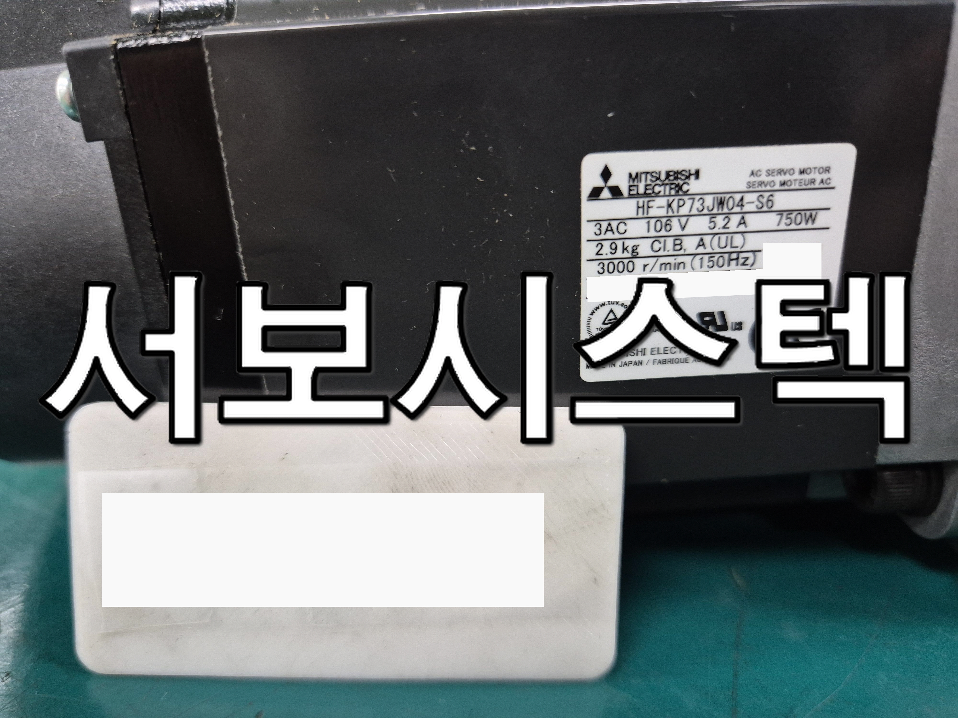 입고된 모터를 확인해 보자면 최대 3000RPM까지 구동될 수 있는 750W 용량 사양을 가졌고, 입력 측 사양은 106V와 5.2A라는 것을 알 수 있으며, 감속기가 장착되어 있다는 것을 사진으로도 알 수 있습니다.