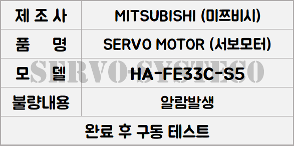 이번에 수리한 제품은 MITSUBISHI AC SERVO MOTOR HA-FE33C-S5입니다.