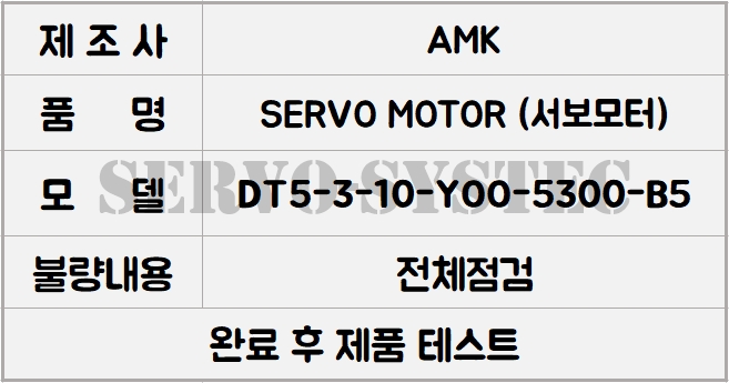 AMK SERVO MOTOR (모델명: DT5-3-10-YOO-5300-B5)의