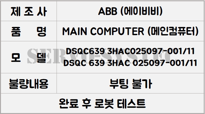 품번:DSQC639 3HAC025097-001/11 DSQC 639 3HAC 025097-001/11 입니다.