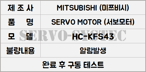 이번에 당사로 입고된 장비는 MITSUBISHI AC SERVO MOTOR HC-SFS121 모델입니다.